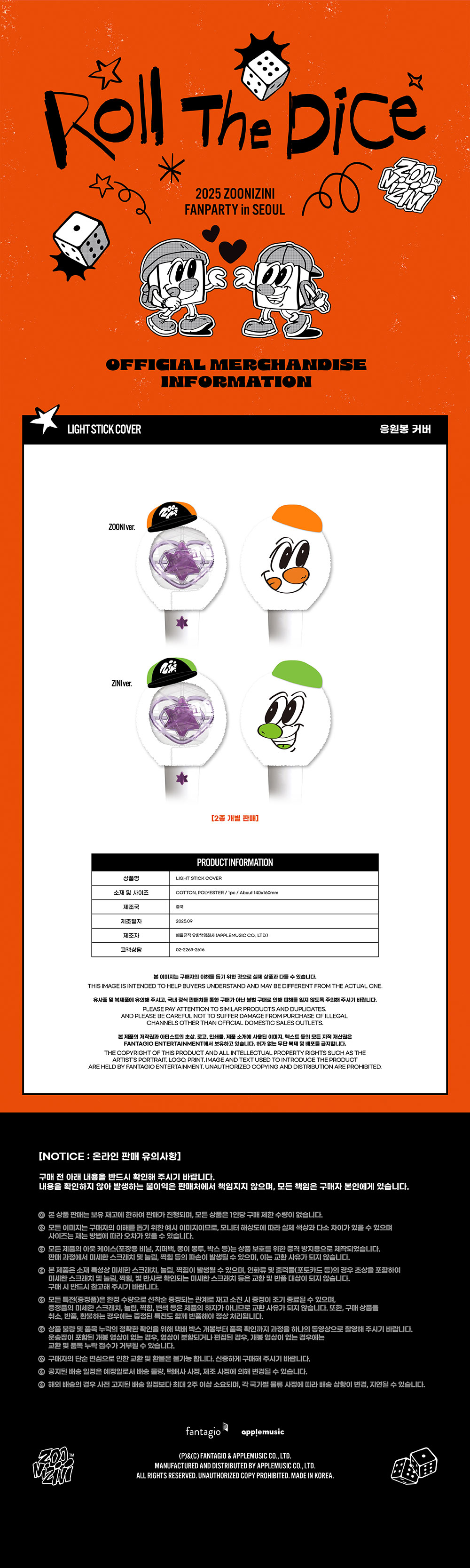 주니지니(ASTRO) - 2025 ZOONIZINI FANPARTY [Roll The Dice] MD / 응원봉 커버 (LIGHT STICK COVER)
