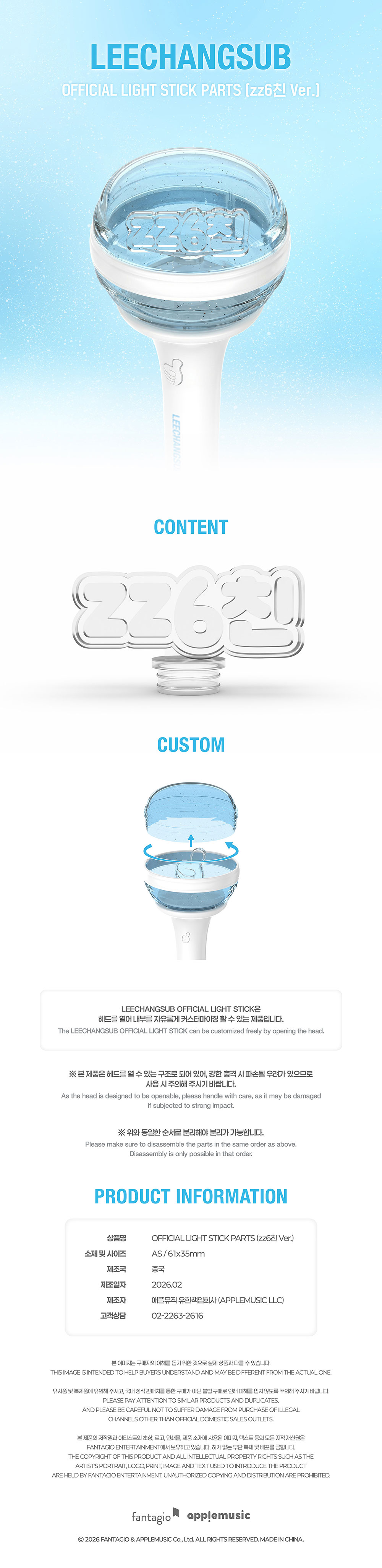 LEECHANGSUB (이창섭) - OFFICIAL LIGHT STICK PARTS (응원봉 파츠) / zz6친 (zz6chin) Ver.
