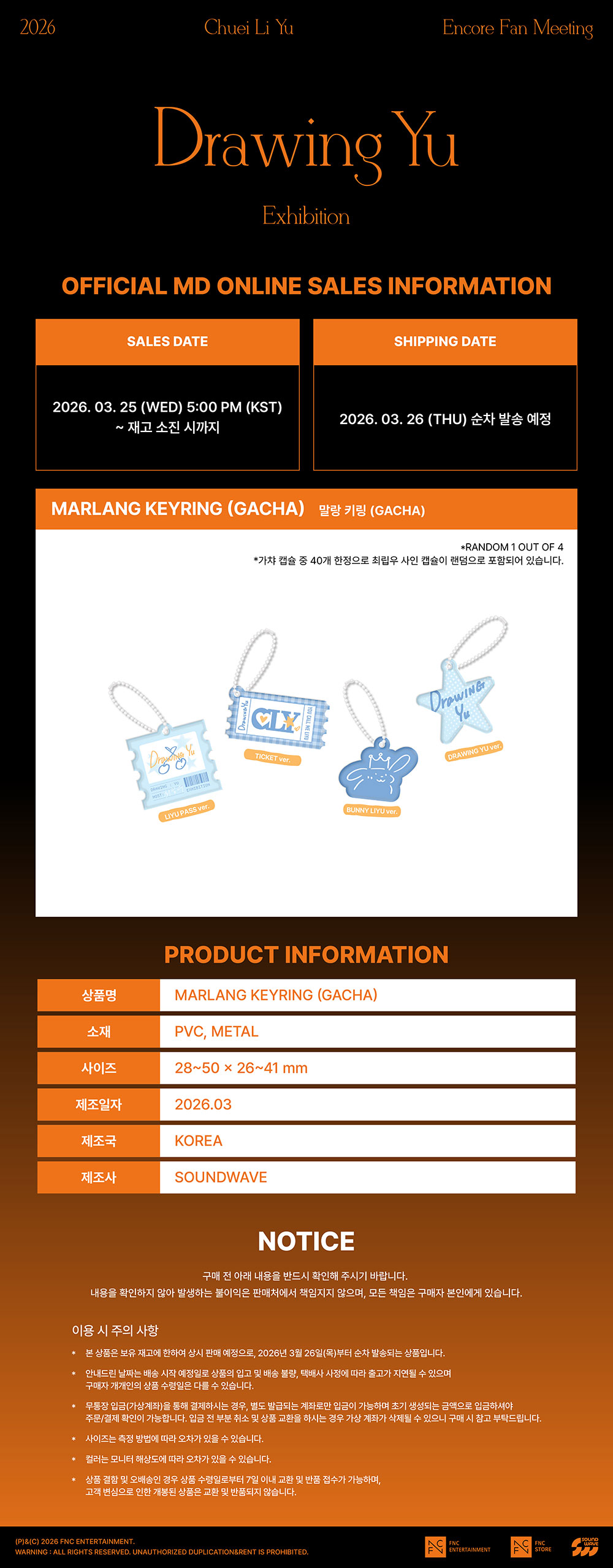 최립우 (Chuei Li Yu) - 2026 Encore Fan Meeting [Drawing Yu] MD / 말랑키링 (MALRANG KEYRING)