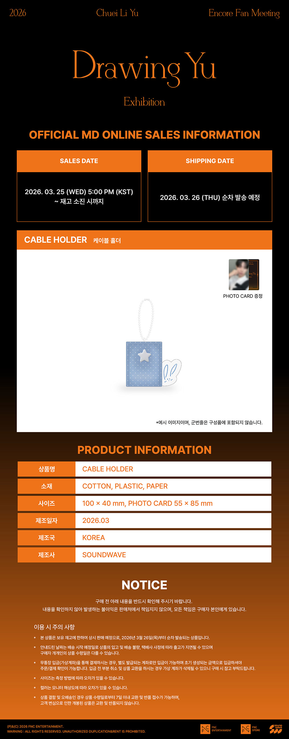 최립우 (Chuei Li Yu) - 2026 Encore Fan Meeting [Drawing Yu] MD / 케이블 홀더 (CABLE HOLDER)