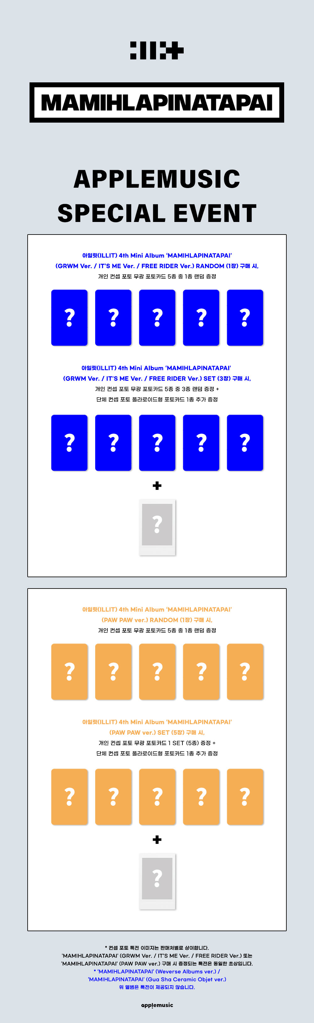 [애플특전][세트/앨범3종] 아일릿 (ILLIT) - MAMIHLAPINATAPAI