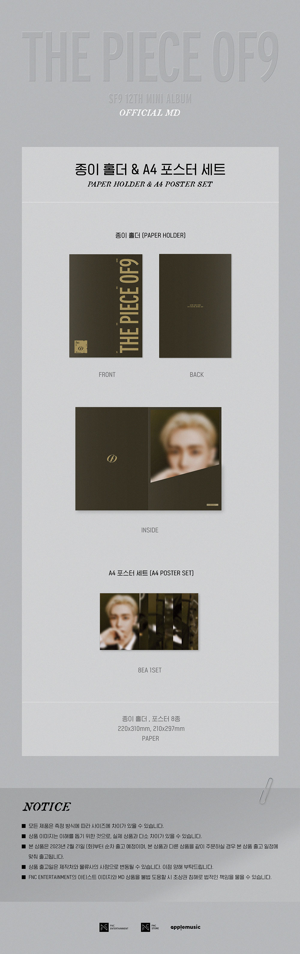 [애플특전] SF9 (에스에프나인) - 12TH MINI ALBUM [THE PIECE OF9] OFFICIAL MD / 종이 홀더 & A4 포스터 세트 (PAPER HOLDER & A4 POSTER SET)