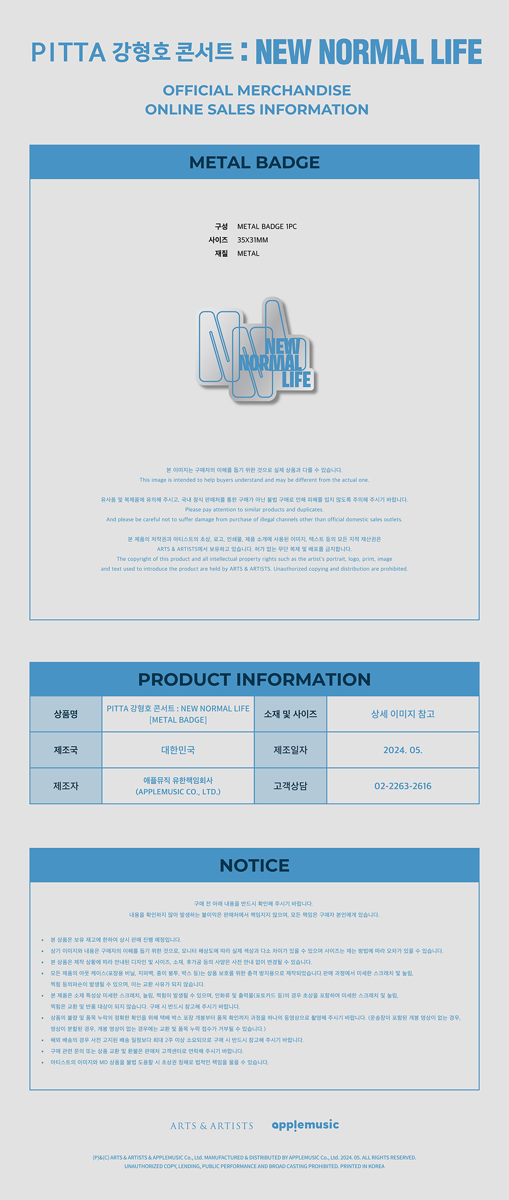 PITTA 강형호 콘서트 : New Normal Life / 금속 뱃지