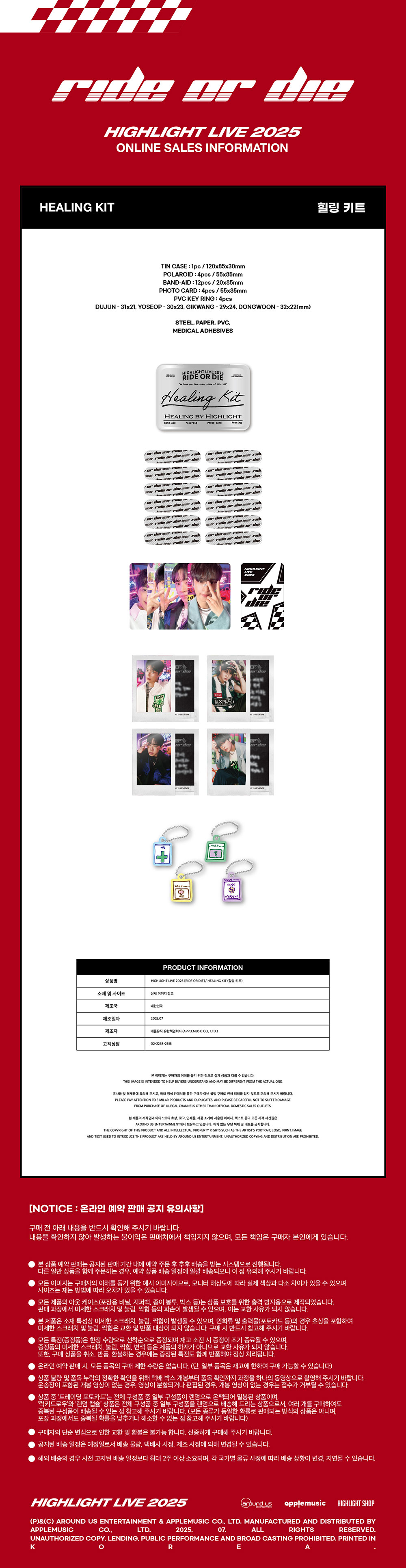 하이라이트 (HIGHLIGHT) - HIGHLIGHT LIVE 2025 [RIDE OR DIE] MD / 힐링 키트 (HEALING KIT)