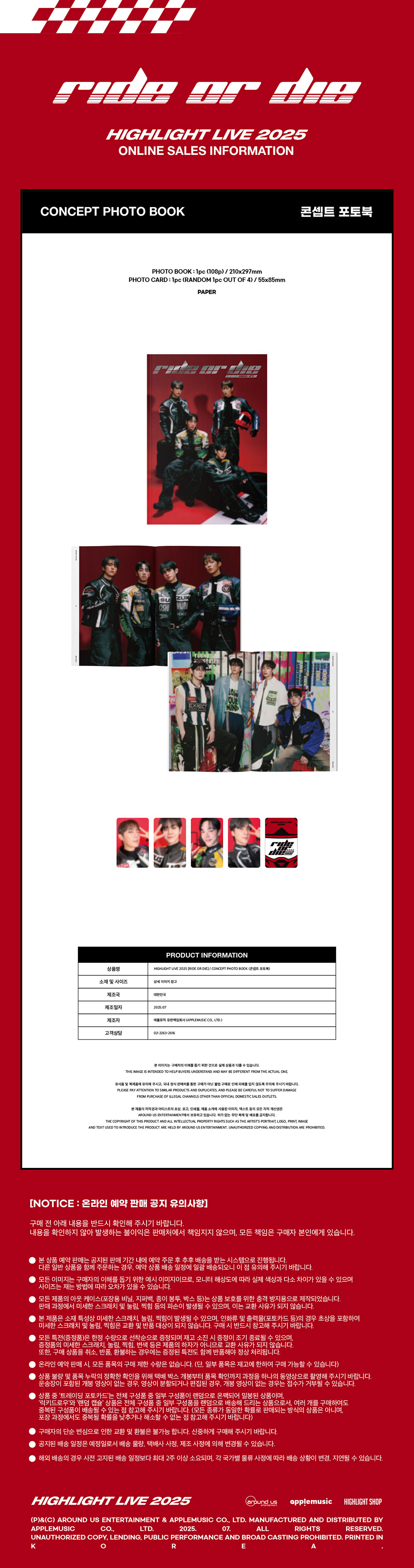 하이라이트 (HIGHLIGHT) - HIGHLIGHT LIVE 2025 [RIDE OR DIE] MD / 콘셉트 포토북 (CONCEPT PHOTO BOOK)